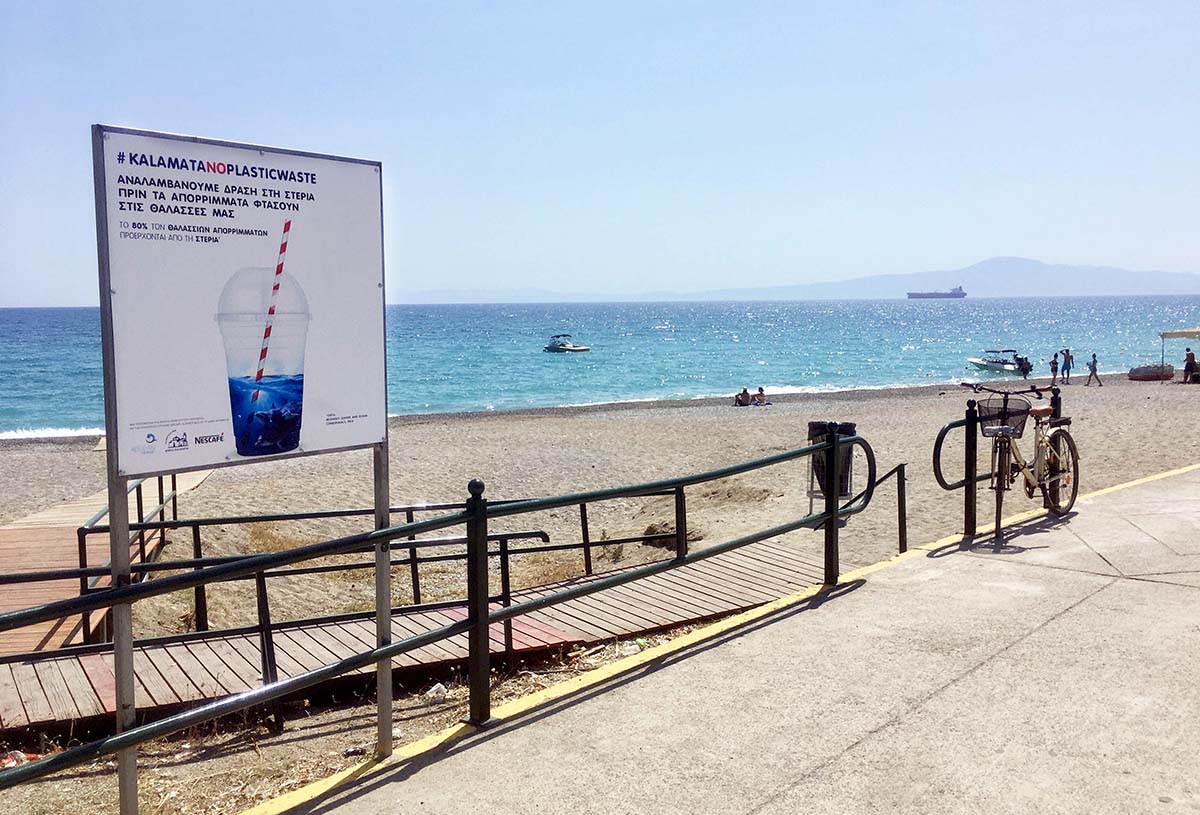 Με σύνθημα «Αναλαμβάνουμε δράση στην στεριά πριν τα απορρίμματα φθάσουν στις θάλασσες μας» και με την τοποθέτηση πινακίδων περιβαλλοντικής ευαισθητοποίησης, οι οποίες ενημερώνουν τους πολίτες σχετικά με τα ζητήματα θαλάσσιας ρύπανσης, σε πολυσύχναστα σημεία της Καλαμάτας, ολοκληρώθηκε το τρίτο μέρος του καινοτόμου προγράμματος που υλοποιούμε σε συνεργασία με τον Δήμο Καλαμάτας και με τη Χορηγία του καφέ Nescafé.